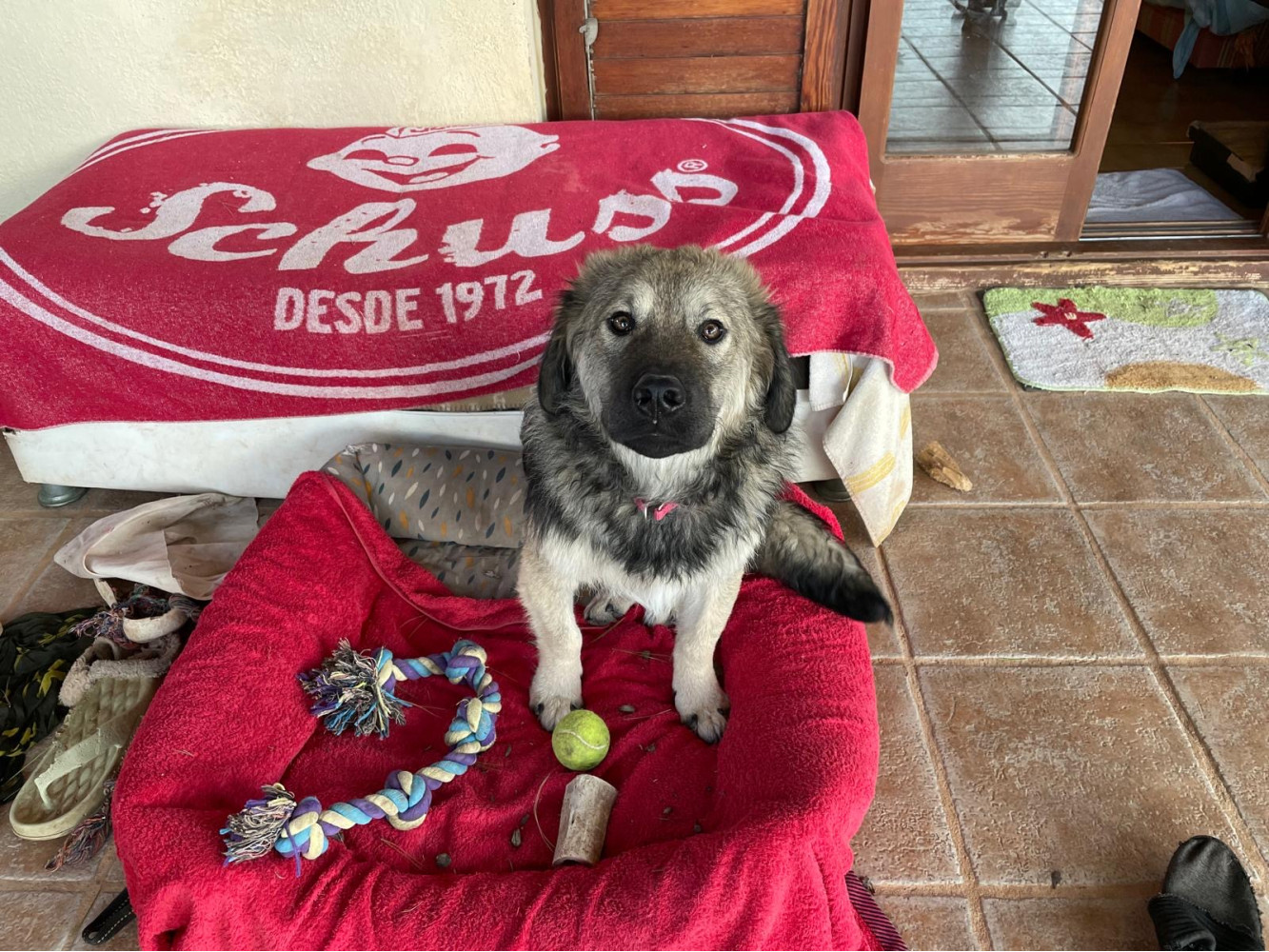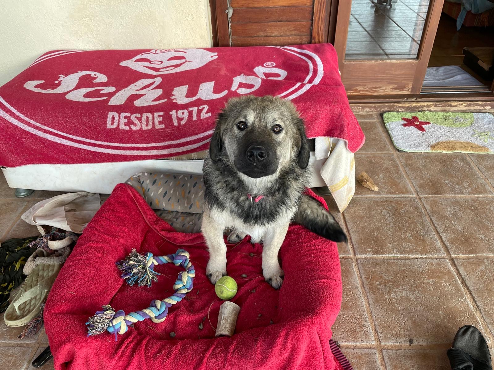 Cocco fue abandonada cuando tenía casi 3 meses y estaba enferma de resfriado. Con el tiempo, hemos tenido que operarla de los codos y de la cadera porque es una perrita que ha crecido mucho sin que sus huesos fueran aún listos para aguantar el peso. Cocco vivió los postres operatorios de manera muy sosegada y serena por ser tan joven.